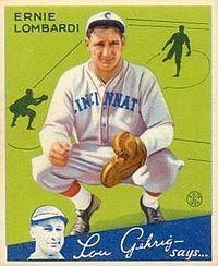 Ernesto Natali "Ernie" Lombardi (April 6, 1908 – September 26, 1977), was a Major League Baseball catcher for the Brooklyn Robins, the Cincinnati Reds, the Boston Braves and the New York Giants during a Hall of Fame career that spanned 17 years, from 1931 to 1947. He had several nicknames, including "Schnozz", "Lumbago", "Bocci", "The Cyrano of the Iron Mask" and "Lom". Bill James called him "the slowest man to ever play major league baseball well." The fact that he was so slow spoke to what an outstanding hitter Lombardi was. The Schnozz was a career .306 hitter despite infields playing very deep for the sloth-like baserunner.