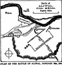 The Battle of Aliwal was fought on 28 January 1846 between the British and the Sikhs. The British were led by Sir Harry Smith, while the Sikhs were led by Ranjodh Singh Majithia. The British won a victory which is sometimes regarded as the turning point of the First Anglo-Sikh War.