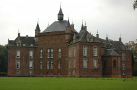 Locals call it: "Oud Kasteel" (Old Castle) (51°05′02″N 4°55′02″E). The castle has been the home of the House of Merode since more than five centuries. The central keep or Donjon was built in local brown stone in the 14th-century. It probably replaced an older fortress on the same spot. Other parts of the building date from the 16th century. The castle was adapted, extended and restorated several times. From the 16th century onwards it was transformed into a more luxurious noble dwelling and gradually lost its fortified character. Several restorations in the 19th century gave it back a more 'romantic' medieval appearance.