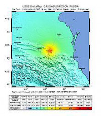 The 2008 Chechnya earthquake was a 5.8 Mw earthquake that occurred on October 11, 2008 at 09:06:10 UTC in Chechnya, Russia, and lasted for 40 seconds. At least 13 people from the districts of Gudermes, Shalinsky and Kurchaloyevsky were killed by the quake and a series of aftershocks,[2][4] which were felt throughout the North Caucasus, and even in Armenia and Georgia. In addition, about 116 people were injured.[5]